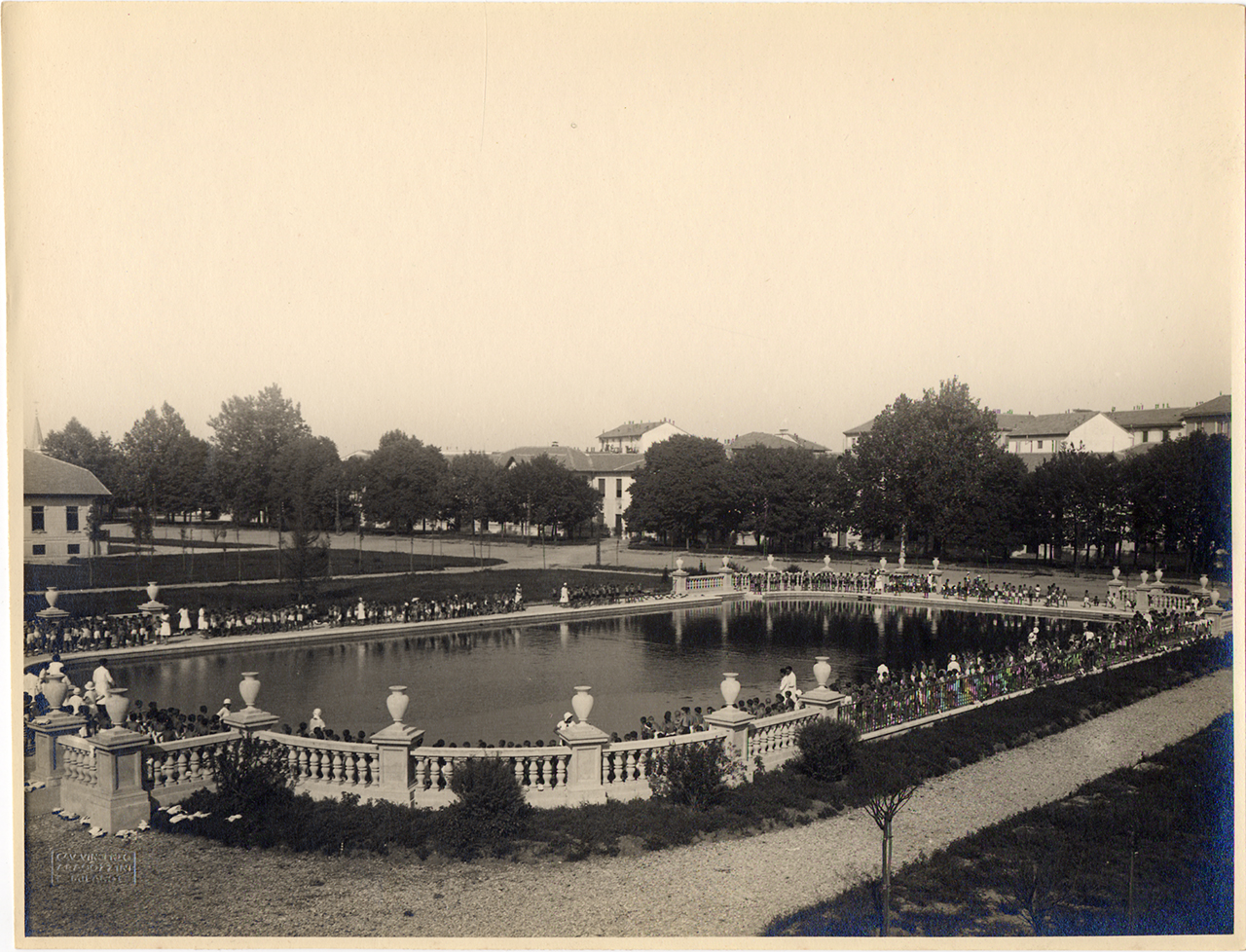 La piscina della Scuola all'aperto “Umberto di Savoia”, 1929. Foto di Vincenzo Aragozzini (Archivio ASP Golgi-Redaelli, Milano)