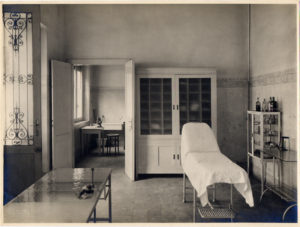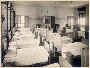 Interno dell’infermeria della Scuola all'aperto “Umberto di Savoia”, 1929. Foto di Vincenzo Aragozzini (Archivio ASP Golgi-Redaelli, Milano)