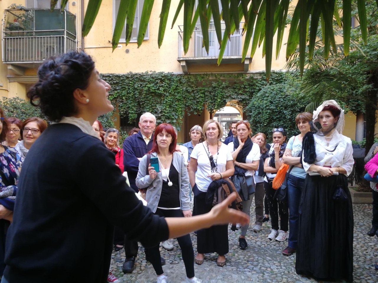 Dramatrà ha realizzato la visita teatrale La forza dell’unione!: tre rappresentazioni il 13 ottobre 2018, con partenza dalle Cucine Economiche e arrivo all’Unione Femminile Nazionale, e una il 14 ottobre 2018, presso l’Archivio di Stato.
